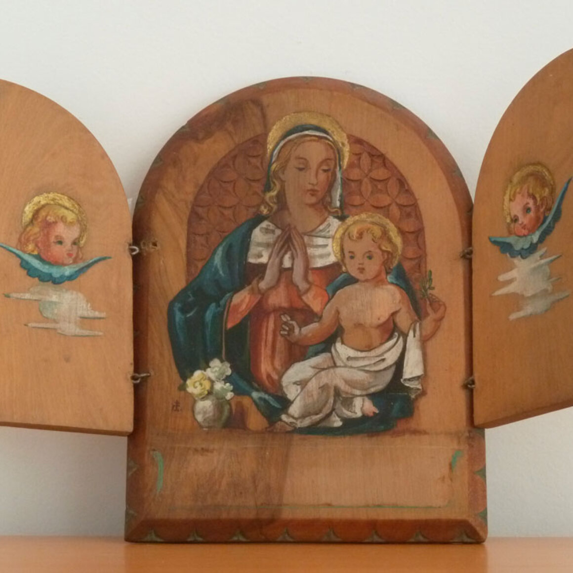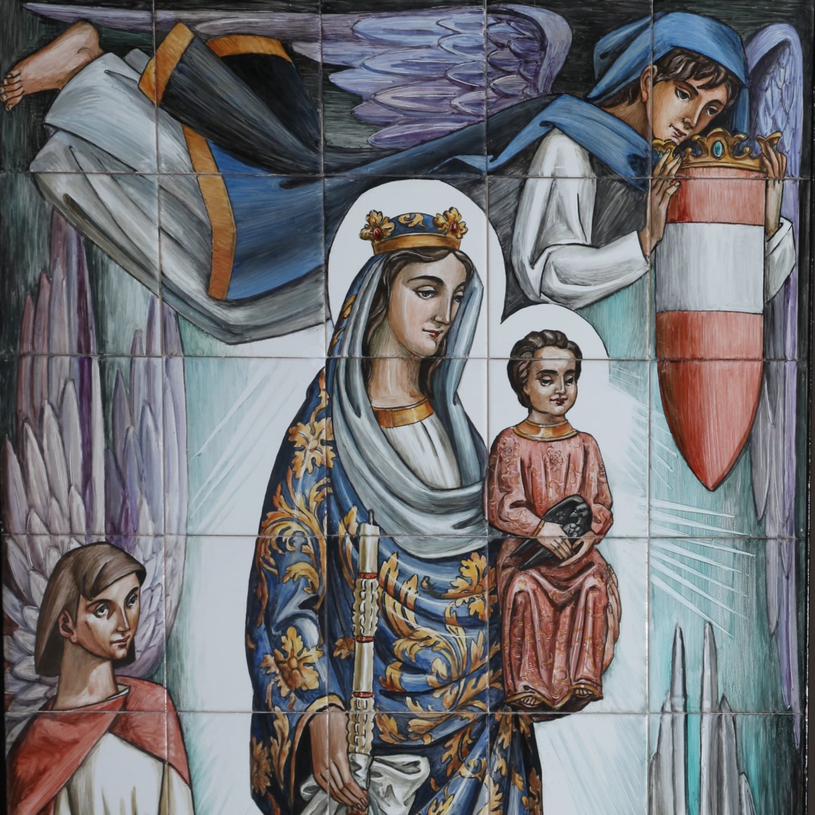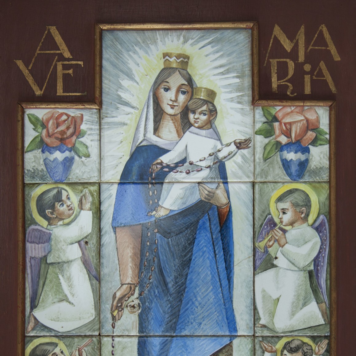 Mare de Déu amb nen i quatre angels. Rajoles de ceràmica (2a època)
