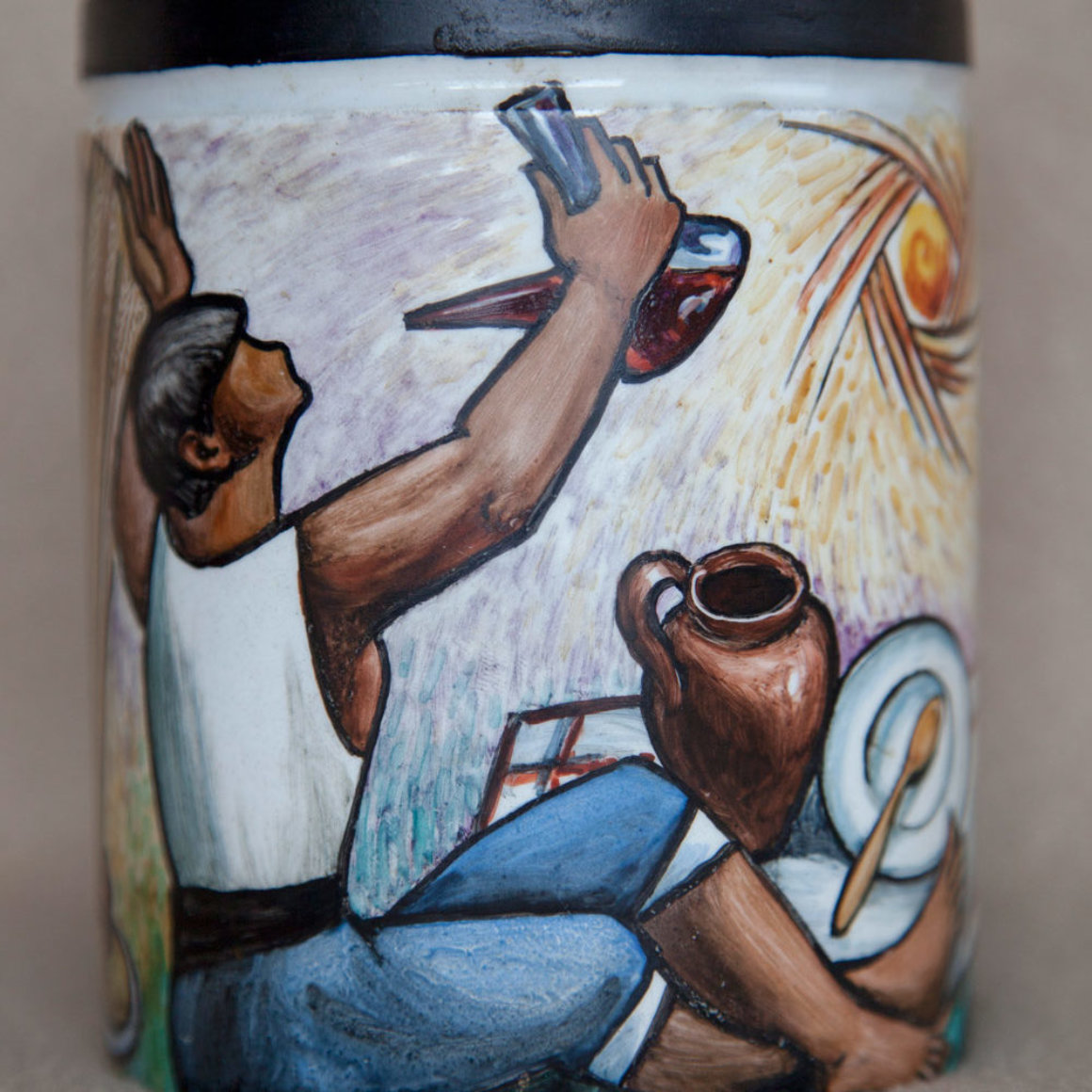 Segadors. Pot de ceràmica. Pintura ceràmica sobre coberta. (2a època)